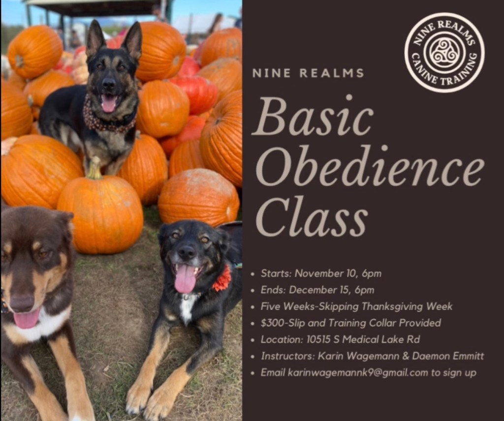 Contact: Karin Wagemann at karinwagemannk9@gmail.com to sign up or for any questions.