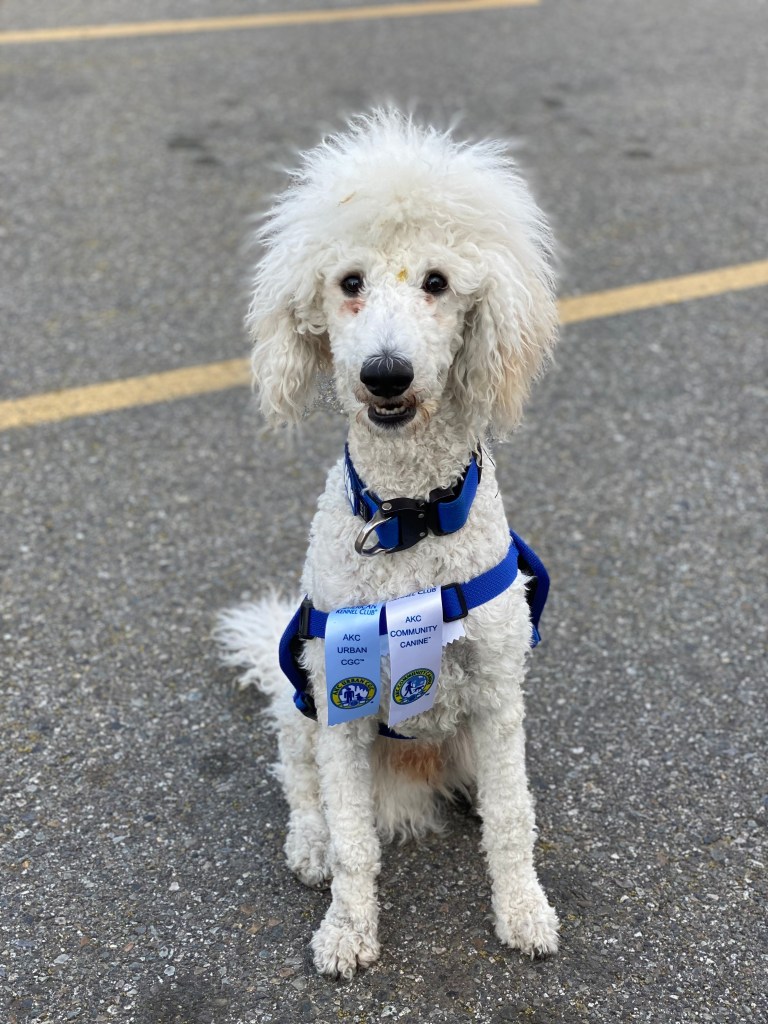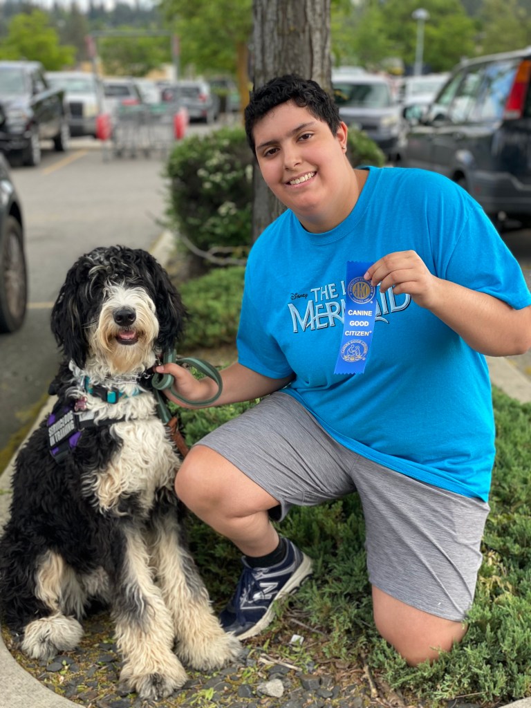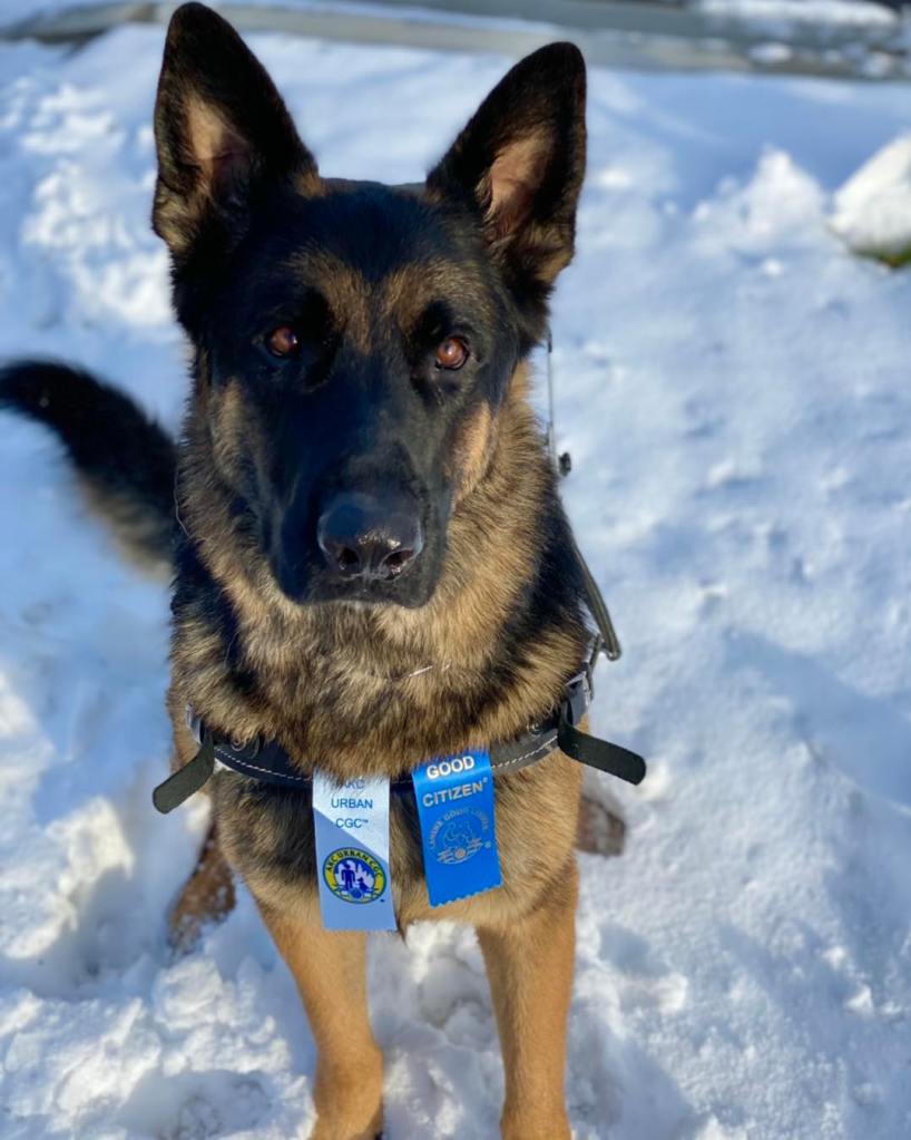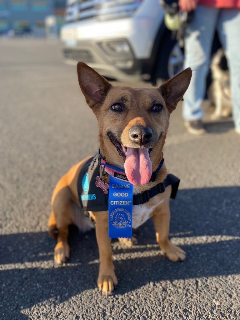 Training starts in the home or pet friendly locations, working on obedience and tasks, and then moves to public access training, with permission from several locations. Handlers and dogs meet with Karin and train several times a month, working on obedience, tasks, and public access until the dog is a fully trained service dog. All dogs must pass all three Canine Good Citizen Tests, the Nine Realms’ Public Access Test, a Task Proficiency Test, and then are certified through the American Society of Canine Trainers (if handlers want this final component). This ensures that the dogs leaving the program are highly trained, prepared, and skilled for their future careers. Please note that certification is not required per ADA law for Service Dogs, as well as the CGC tests. Nine Realms holds its handlers and dogs to higher levels of standards and thus requires each team to meet these standards before passing the program.